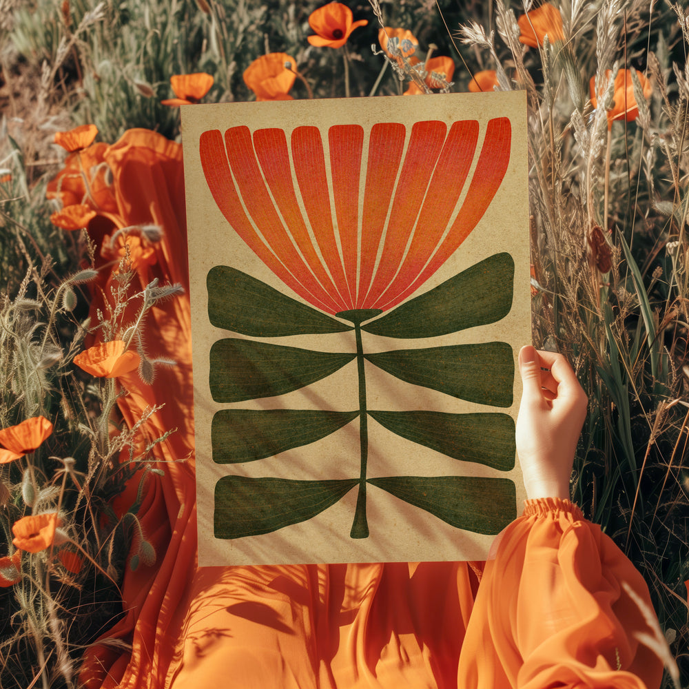 Inspiriert von der mühelosen Coolness und dem eigenwilligen Charme von Jemaine Clement ist Jermaine ein markantes Blumenstück mit rhythmischer, grafischer Qualität. Seine strukturierte, symmetrische Form wird durch den organischen Fluss seiner Blütenblätter ausgeglichen, die in warmen Sonnenuntergangstönen von Orange und Rot vor tiefgrünen Blättern blühen. Das minimalistische und dennoch ausdrucksstarke Design erinnert an botanische Vintage-Drucke und bewahrt gleichzeitig eine frische, moderne Note. Ob beabsichtigt oder nicht, die alternative Schreibweise verleiht ihm eine einzigartige Note – ganz wie sein Namensgeber. Gedruckt auf archivarischem Papier mit satten, langlebigen Tinten, setzt Jermaine mit seiner kühnen Schlichtheit und retro-modernen Ästhetik in jedem Raum ein Statement.