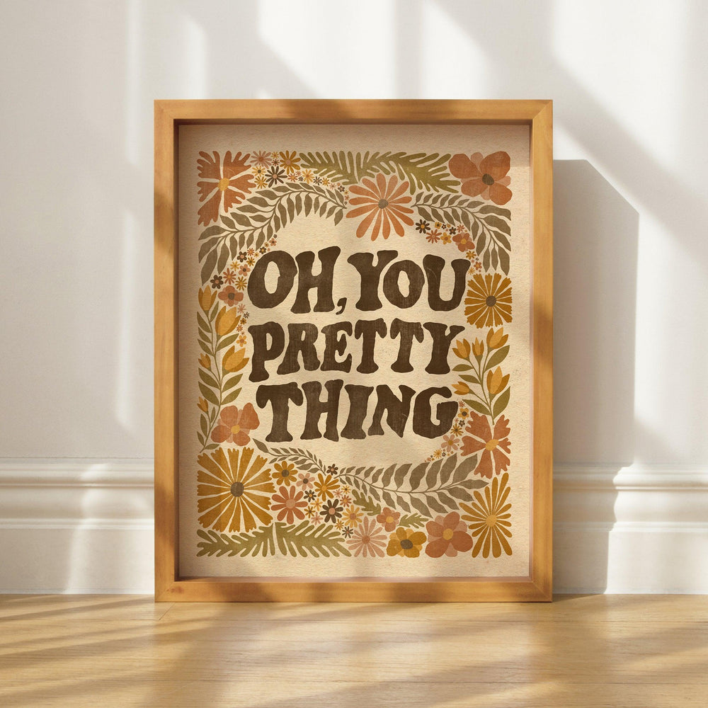 „Oh, You Pretty Thing“ ist eine warme, florale Hommage an David Bowies legendären Song von 1971 – eine Hommage an Veränderung, Schönheit und den Lauf der Zeit. Diese handgezeichnete Komposition verbindet Vintage-inspirierte Typografie mit botanischen Elementen und schafft so eine nostalgische und zugleich zeitlose Komposition. Perfekt für Musikliebhaber und Träumer gleichermaßen, verleiht sie jedem Raum einen Hauch von Retro-Charme und künstlerischer Wärme. Gedruckt auf archivarischem Papier mit satten, langlebigen Tinten, ist dieses Werk ein markantes und zugleich müheloses Statement.